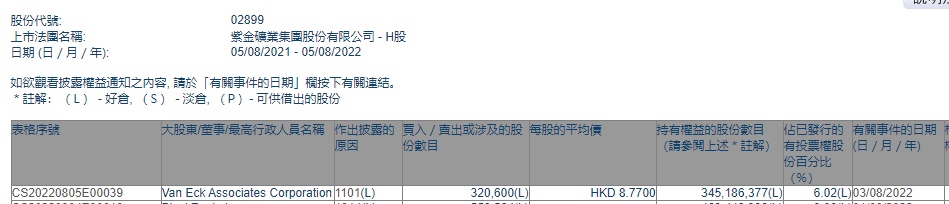 智通财经APP获悉,香港联交所最新资料显示,8月3日,Van Eck Associates