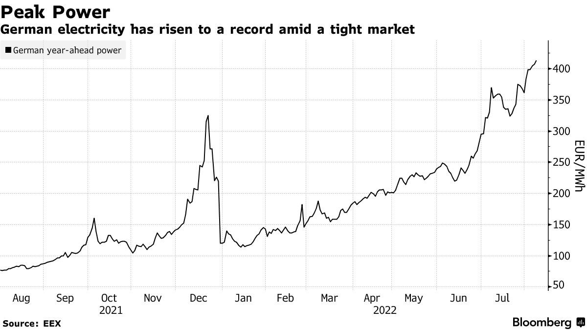 在市场紧张的情况下,德国电价已飙升至创纪录水平