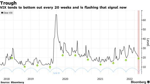 VIX指数似乎存在为期20周的周期,跌至低点后便开始反弹。伦敦的独立市场分析公司Vectisma董事总经理Christopher Grafton表示,最新的低谷即将来临,这表明美股将“向上爆发”。