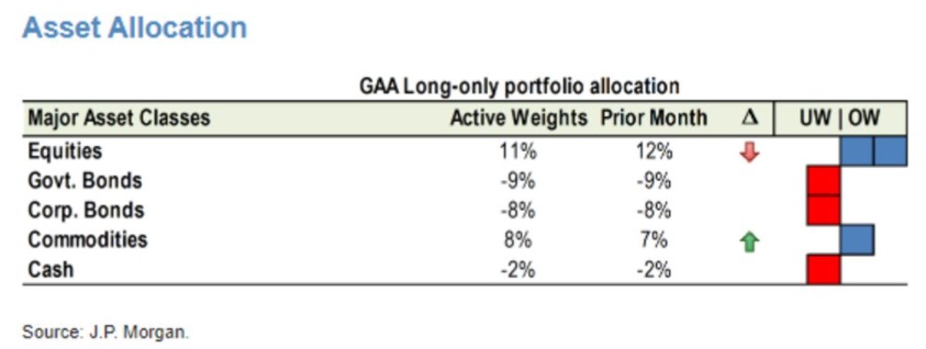 他们写道:"优于预期的经济数据正诱使股市和信贷市场消化衰退风险。由于大宗商品落后于其他风险资产,我们将部分风险配置从股票转移到大宗商品。”