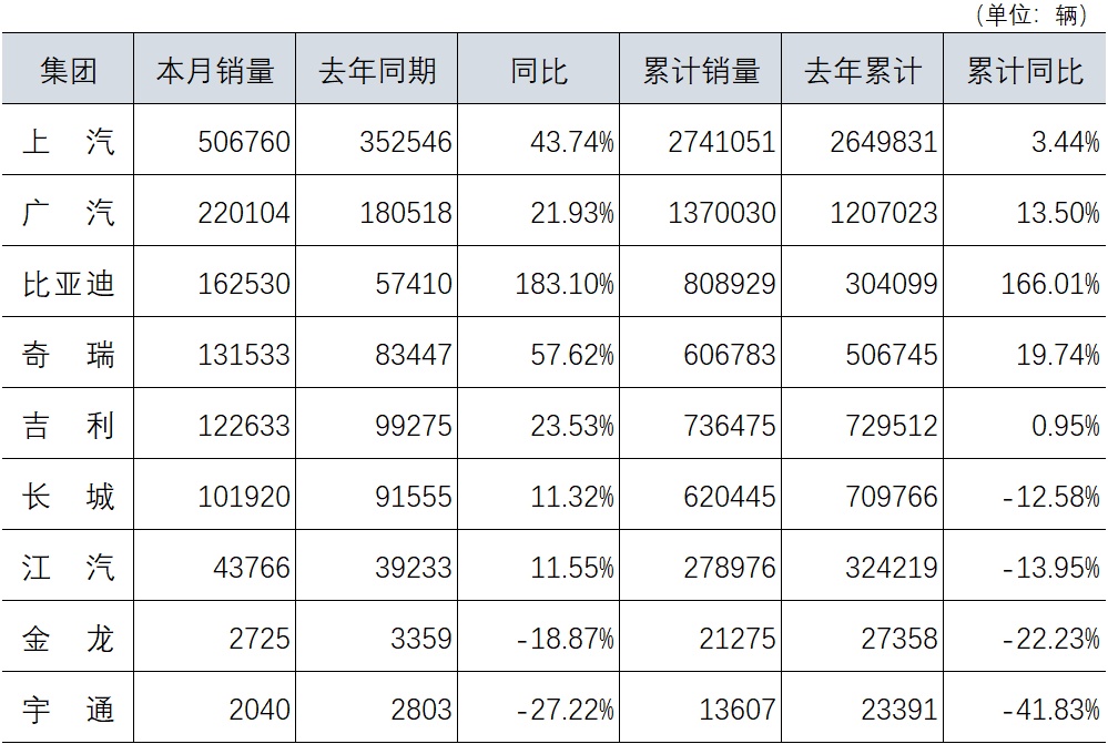 智通财经APP获悉,8月9日,中汽协公布主要汽车企业2022年7月份销量数据。数据显示,主要汽车企业7月销量同比增长提速,7月销量同比增长幅度均大幅领先前7月累计同比增幅。其中,上汽(600104.SH)7月销量同比增长43.74%,前7月累计同比增3.44%;广汽(601238.SH)7月销量同比增长21.93%,前7月累计同比增长13.5%;比亚迪(002594.SZ)7月销量同比增183.1%,前7月累计同比增长166.01%。