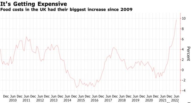 智通财经获悉,对食品制造商来说,这是一个双重打击,而在生活成本危机中挣扎的消费者也很快感受到这一压力。在英国,英国央行预计通货膨胀率今年将达到13%以上的峰值,三分之一的英国家庭将把收入的10%以上花在能源上,而现在不断飙升的食品价格还在加剧食品贫困。