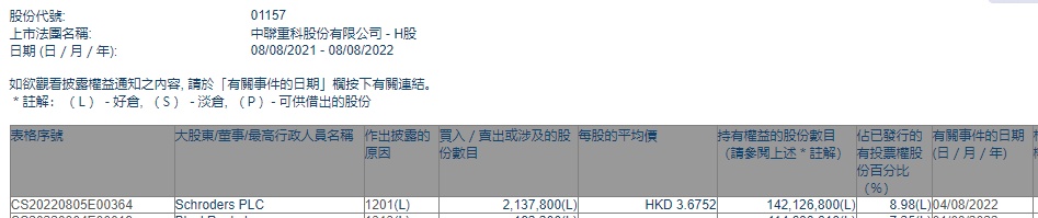 智通财经APP获悉,香港联交所最新资料显示,8月4日,Schroders