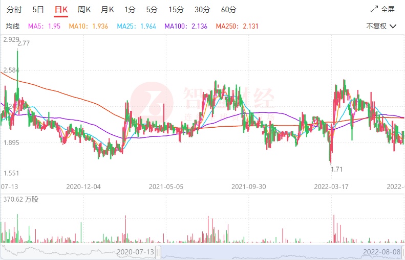 智通财经APP注意到,自今年4月开始,山水水泥的月K线已连续四个月收阴线。另外,从换手率来看,山水水泥的交投表现清淡,近几个月的月度换手率均不足0.1%,市场热度可谓已降至“冰点”。