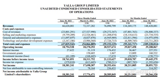 智通财经APP了解到,北京时间8月9日早间,雅乐科技(YALA.US)公布其2022年第二季度业绩。2022年二季度,公司营业收入7609.1万美元,同比增长14.2%;实现净利润2035.3万美元,同比增长10.7%,环比涨幅达到15.0%,净利润率26.7%。