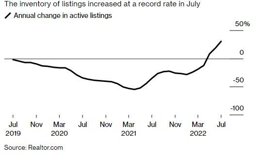 智通财经APP获悉,美国7月待售房屋供应量以创纪录的速度增长,根据美国房地产网站Realtor.com周二发布的一份报告,美国房屋活跃挂牌量同比增长31%,连续第三个月创历史新高。这表明抵押贷款利率上升正在使美国房地产市场降温。