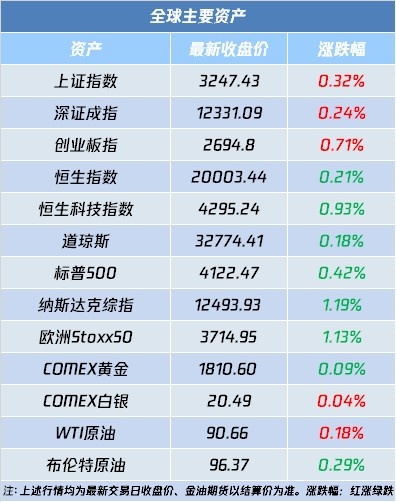 纽约黄金期货周二收高0.4%,创六周来最高收盘价;周二美国WTI原油收跌0.3%,布伦特原油收跌0.35%。