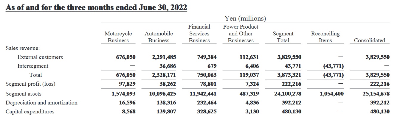 按业务划分,该公司摩托车业务营收6760.50亿日元,汽车业务营收2.33万亿日元。