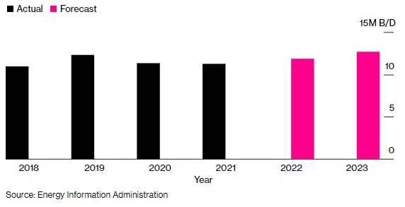 美国能源情报署还下调了今年的产量预测,估计美国2022年的平均产量将为1186万桶/天,这是该机构1月份报告以来的最低预测。