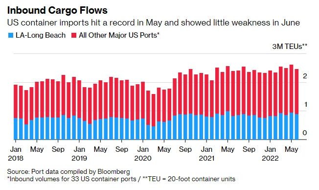 今年5月,在美国西海岸,码头工人工会领导人开始了正在进行的合同谈判,他们指责“外国拥有的、价值数十亿美元的航运公司通过收取10倍于正常运费的运费来欺骗美国企业,并助长了通胀的上升。”