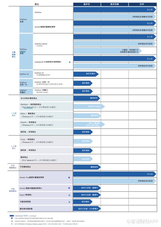作为一家致力于提供结构性心脏病治疗领域的完整解决方案企业,目前心通医疗已经有 5 款主动脉瓣介入产品、5款二尖瓣介入产品、3款三尖瓣介入产品、1款针对主动脉瓣和二尖瓣疾病的外科生物瓣。除了已经商业化的VitaFlow和VitaFlow Liberty之外,在主动脉瓣介入领域、二尖瓣介入领域、三尖瓣介入领域、外科瓣膜以及手术配套产品均有多款在研产品。