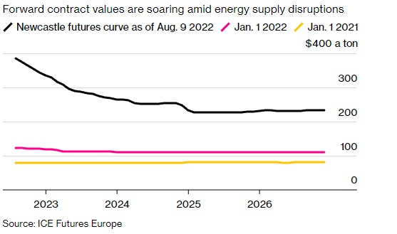 智通财经APP获悉,从本月开始生效的欧盟对俄煤炭禁令将使该地区增加从印尼甚至澳大利亚等国的煤炭进口。与此同时,用液化天然气替代俄气的计划将使其他国家获得更少的燃料,导致它们使用更多的煤炭。惠誉解决方案(Fitch Solutions)分析师表示,欧洲摆脱俄罗斯燃料的这两种方式将支撑煤炭价格处于高位并可能会持续数年。