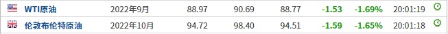 3. 截至发稿,WTI原油跌1.69%,报88.97美元/桶。布伦特原油跌1.65%,报94.72美元/桶。