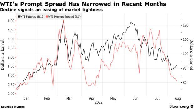 本月早些时候,由于投资者担忧经济放缓将抑制全球能源需求,原油价格回落至六个月低点,并抹去了俄乌冲突爆发以来的全部涨幅。另外,WTI原油期货的即期价差由一个月之前的每桶2.88美元缩窄至每桶0.71美元,布伦特原油期货的即期价差同样缩窄至每桶1.22美元,较一个月前下降了约三分之二。
