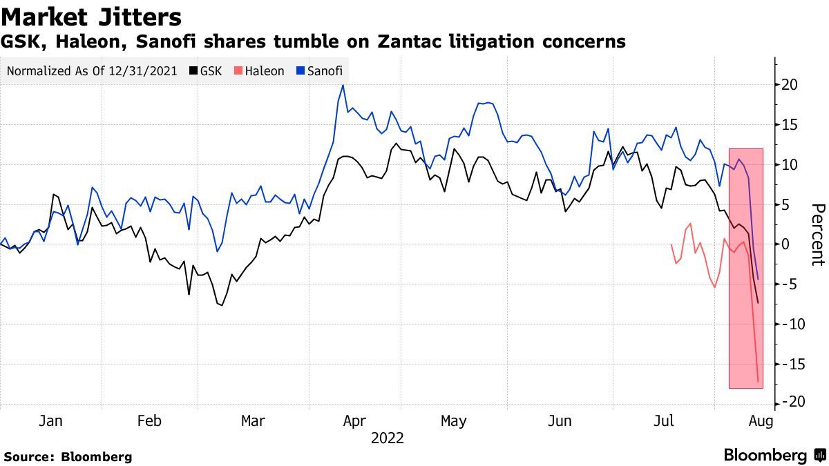 GSK、Haleon和赛诺菲股价因Zantac诉讼担忧而暴跌