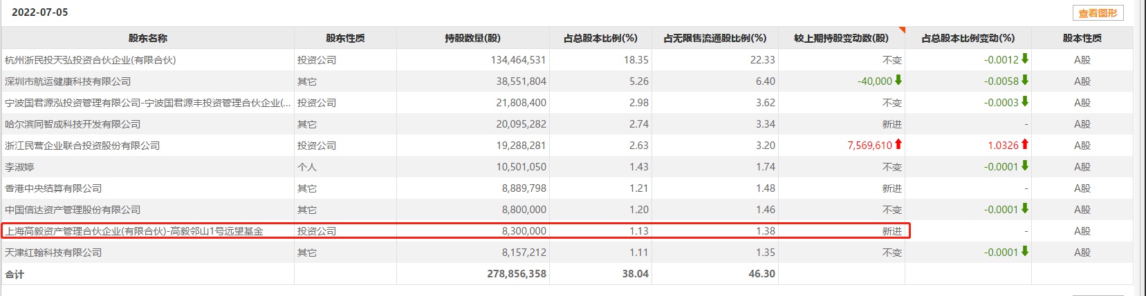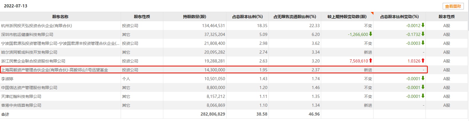 8月11日,派林生物发布《关于回购股份事项前十大股东和前十大无限售条件股东持股情况的公告》,公司最新前十大股东名单随之曝光。截至7月5日,冯柳管理的高毅邻山1号远望基金持有830万股派林生物,占总股本比例为1.13%,持仓市值超1.88亿元,首次晋升派林生物第9大流通股东。至7月15日,冯柳加仓600万股,高毅邻山1号远望基金持有的派林生物股数增至1430万股,占比1.95%。