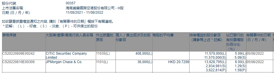 智通财经APP获悉,香港联交所最新资料显示,8月5日,小摩增持美兰空港(00357)3.6万股,每股作价20.7289港元,总金额约为74.62万港元。增持后最新持股数目约为1362.88万股,最新持股比例为6.00%。