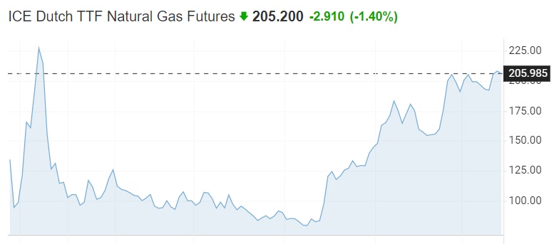 数据显示,欧洲基准荷兰近月天然气期货价格周五小幅下跌1.40%至205.20欧元/兆瓦时,本周累计上涨约5%。目前,欧洲距离冬季供暖期正式开始还剩两个月,而困扰该地区数月的能源危机可能会进一步恶化。该地区仍然严重依赖于俄罗斯天然气来度过接下来寒冷的冬季,因此,任何进一步的供应中断都有可能增加停电和能源配给的风险。