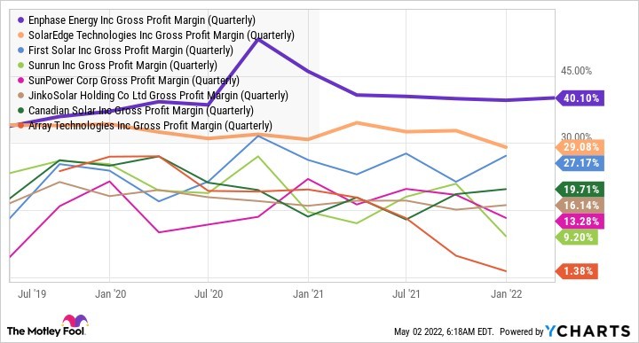 此外,Enphase Energy二季度的毛利率达到了41.3%,其毛利率表现长期以来都好于其他太阳能公司;在过去三年中,该公司的毛利率一直都是同行中最高的。更重要的是,Enphase Energy能将其高毛利率转化为利润,这是其他许多太阳能公司目前尚未做到的。