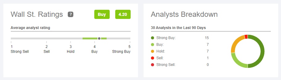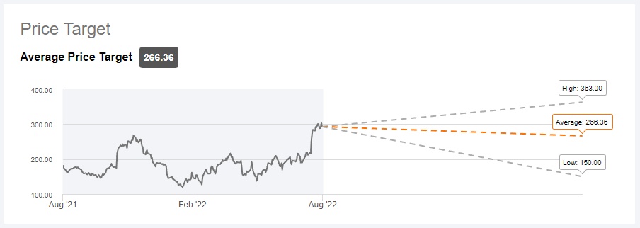 华尔街分析师们对Enphase Energy的平均评级为“买入”,30位分析师中有15位予“强力买入”评级、7位予“买入”评级;平均目标价则为266.36美元。