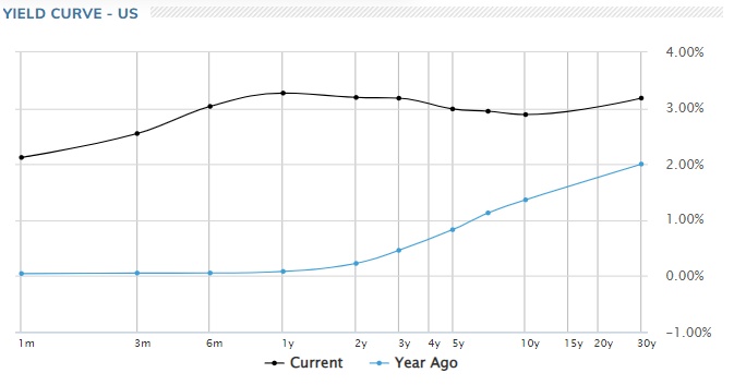 10年期美国国债收益率和2年期收益率目前分别为2.85%和3.19%左右,近期美债收益率曲线趋平,倒挂幅度日益扩大,目前已经连续29天出现倒挂。