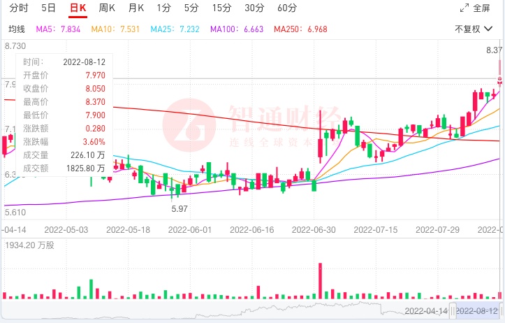 智通财经APP注意到,今年来百富环球(00327)正处于典型的多头行情之中。以日K线来看,截至8月12日收盘,百富环球股价报8.05港元,较年内低点强势上涨了接近八成,涨势不可谓不凌厉。