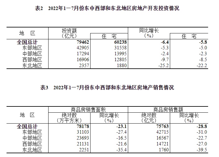 1—7月份,全国房地产开发投资79462亿元,同比下降6.4%;其中,住宅投资60238亿元,下降5.8%。