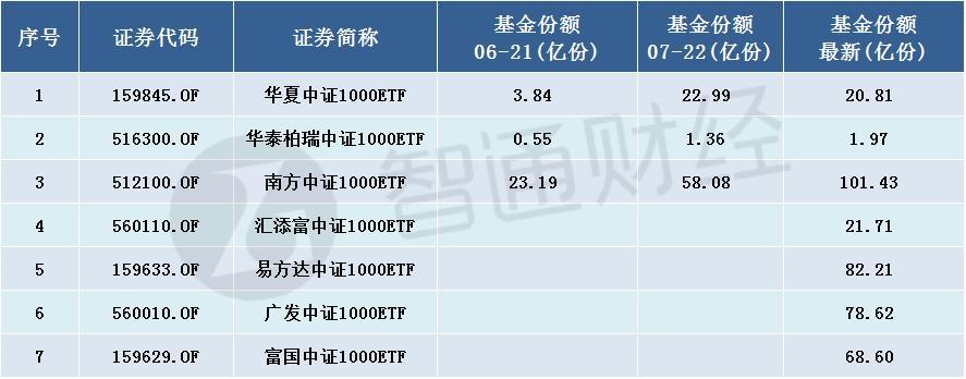 7月中下旬,易方达、广发、富国、汇添富旗下的中证1000ETF首发,4只基金均一周结募,合计首募规模275.06亿元,其中有3只产品募资额均近80亿元。