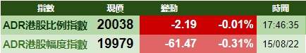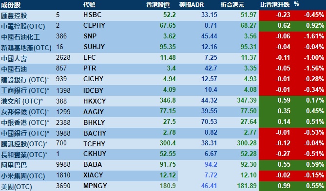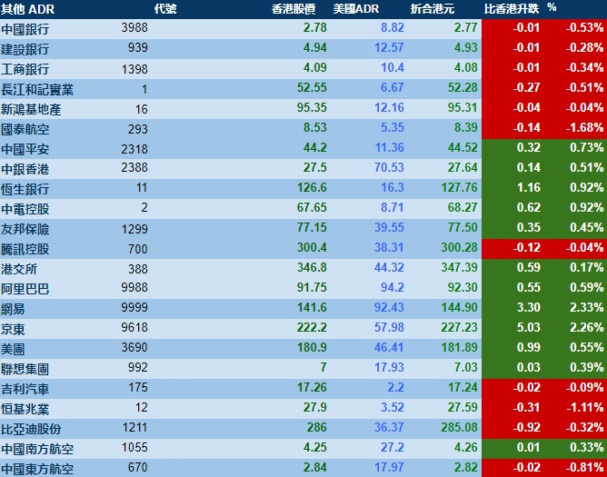 智通财经APP获悉,周一美股三大指数集体收涨,港股ADR指数下跌,按比例计算,收报20038点,较香港收市跌2.19点或0.01%。