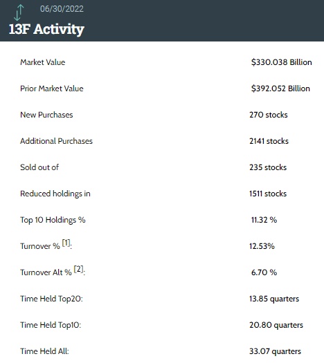据统计,景顺集团Q2持仓总市值达3300.38亿美元,上一季度总市值为3920.52亿美元,环比降低15.8%。景顺集团在第一季度的持仓组合中新增了270只个股,增持了2141只个股。同时,景顺集团还减持了1511只个股,清仓了235只个股。其中前十大持仓标的占总市值的11.32%。