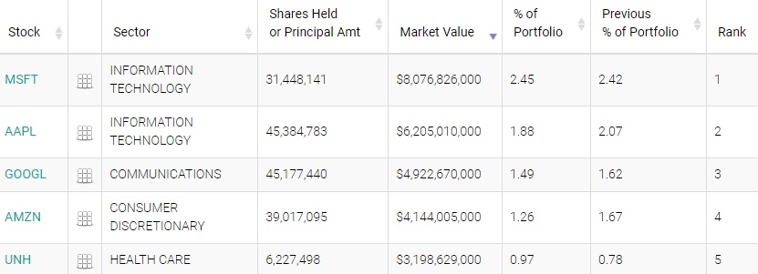 谷歌(GOOGL.US)位列第三,持仓约4517.74万股,持仓市值49.23亿美元。
