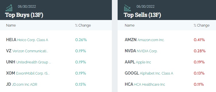 从持仓比例变化来看,前五大买入标的分别是:Heico Corp(HEI.A.US)、Verizon(VZ.US)、联合健康、埃克森美孚(XOM.US)、京东 (JD.US)。