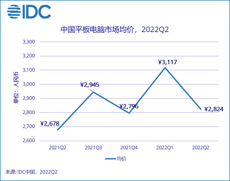 2022年第二季度中国平板电脑消费市场:首先看中国平板电脑消费市场,总出货约673万台,同比增长13%。且在荣耀、小米之后,OPPO和vivo等主流消费电子品牌切入平板赛道推动行业竞争,新进入品牌带动了平板电脑产业在中国的持续增长,同时也加速了平板电脑的行业洗牌价格下探。2022年第二季度中国平板电脑市场平均销售单价均价环比下降9.4%,加速了产品由1-2-3线城市向4-6级市场的普及。