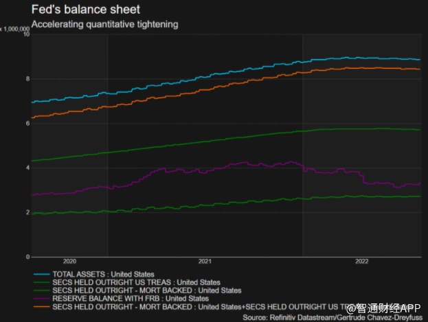 截至上周,美联储的资产负债表规模接近9万亿美元。自6月份美联储启动QT以来,其持有的美国国债和抵押贷款支持证券并未显著下降,但随着时间的推移应该会下降,尽管不会直线下降。