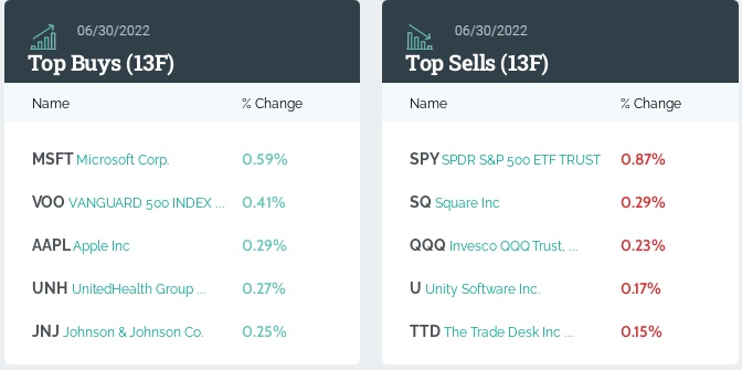 从持仓比例变化来看,前五大买入标的分别是:微软、Vanguard标普500ETF(VOO.US)、苹果、联合健康(UNH.US)、强生(JNJ.US)。