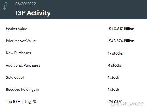 动视暴雪(ATVI.US)位列第二,持仓市值约29.49亿美元,占投资组合比例为7.22%。