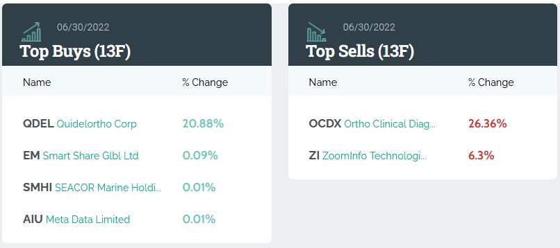 前两大卖出标的分别是:Ortho Clinical Diagnostics(OCDX.US)以及ZoomInfo。