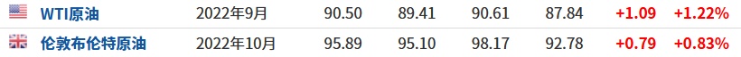 3. 截至发稿,WTI原油涨1.22%,报90.50美元/桶;布伦特原油涨0.83%,报95.89美元/桶。
