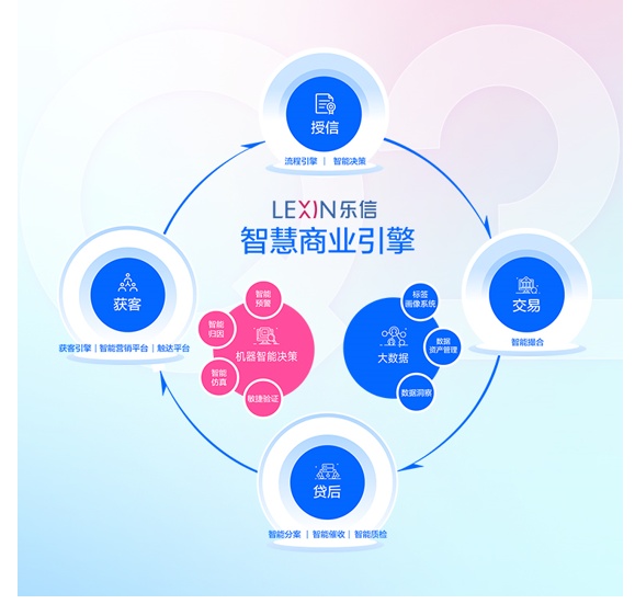 乐信把此前多年积累的领先技术能力进行整合,升级为智慧商业引擎,这是以大数据、机器智能决策为基础,涵盖获客、授信、交易、贷后全流程的系统。乐信智慧商业引擎既是企业的大脑,也是企业的双手,提供一整套分析和决策的工具,帮助业务实现敏捷运营、快速迭代,极大地提升决策、经营和业务运营效率。