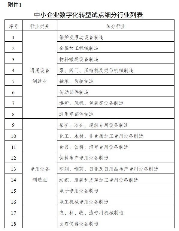 1.聚焦重点方向。将制造业关键领域和产业链关键环节的中小企业作为数字化转型试点的重点方向,对其中数字化转型需求迫切、发展潜力巨大、经济社会效益明显的中小企业加大支持力度。重点向医药和化学制造、通用和专用设备制造、汽车零部件及配件制造、运输设备制造、电气机械和器材制造、计算机和通讯电子等行业中小企业倾斜。由各地结合发展实际、发展阶段和发展需求按照细分行业列表申报服务平台和对应改造的“小灯塔”企业名单。