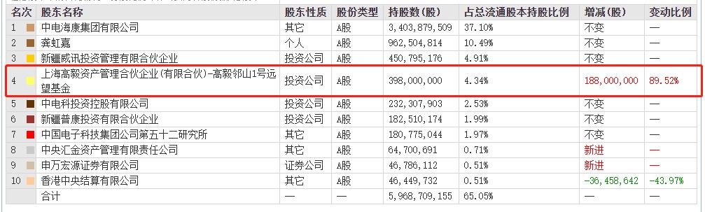 海康威视(002415.SZ)2022年半年报披露,冯柳在管产品——高毅邻山1号远望基金大举买入海康威视1.88亿股,接近翻倍式加码,增持比例高达89.52%,持股数量升至3.98亿股,持仓市值飙升至144亿元,占总股本比例达到4.22%,升至第四大股东。