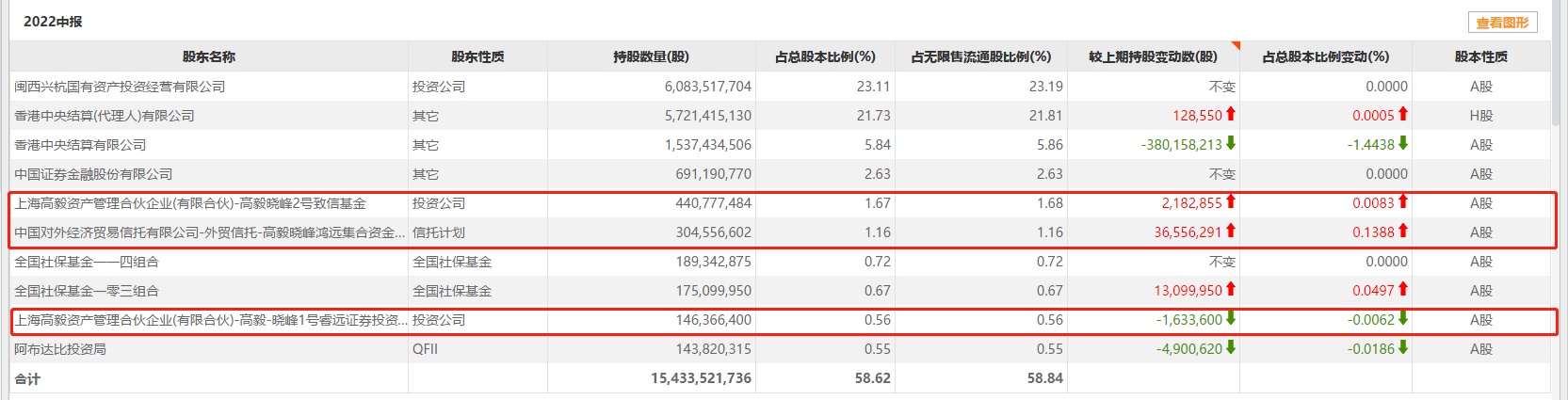 一季度末,高毅晓峰2号致信基金和高毅晓峰鸿运曾持有9708万股东方财富,期末持仓市值达24.6亿元。而据东方财富半年报显示,前十大流通股东名单中已不见高毅旗下产品身影。