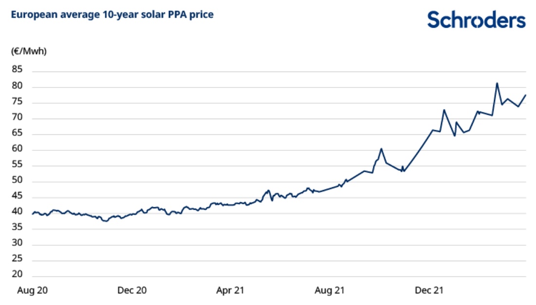 更高的电价也影响了电力的长期合同价格,这意味着这些项目的投资回报现在看起来更有吸引力。