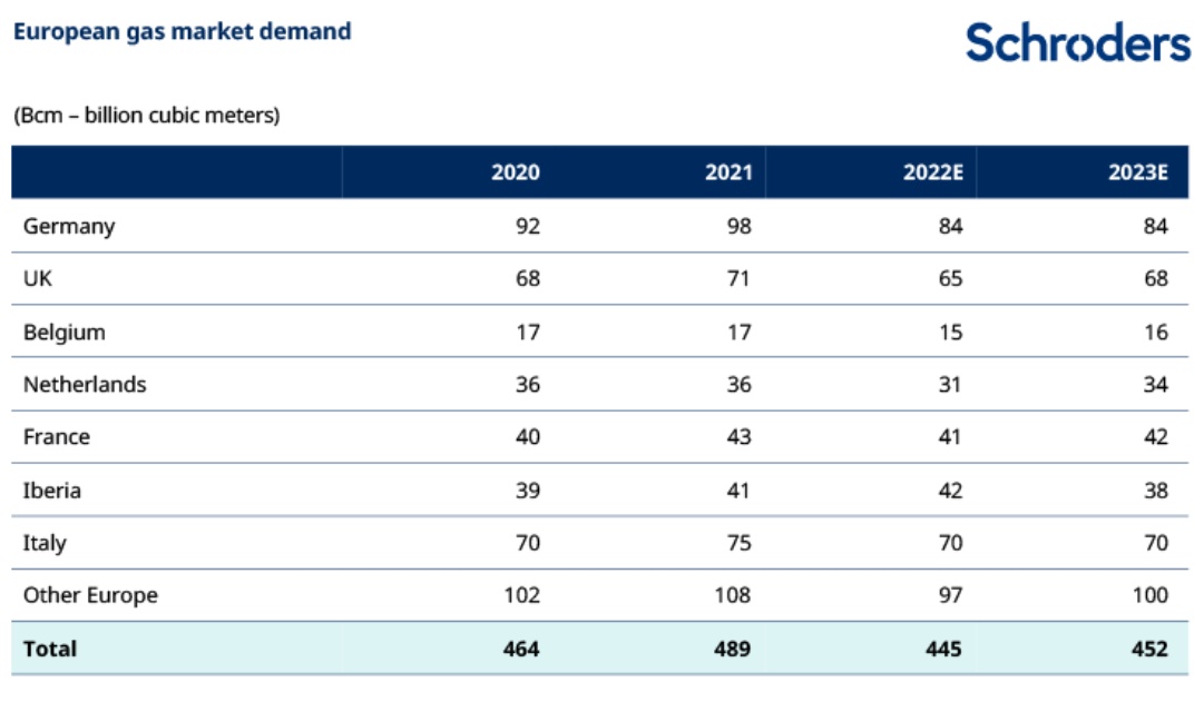 Mark Lacey称:“随着价格同比上涨约400%,一些需求要素被破坏是不可避免的。2022年,欧洲的天然气需求可能会下降10%左右。考虑到经济衰退的风险,即使价格降低,2023年需求也不太可能大幅增长。”