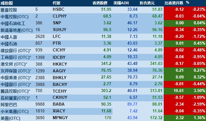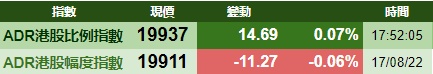 智通财经APP获悉,周三美股三大指数集体收跌,港股ADR指数上涨,按比例计算,收报19937点,较香港收市涨14.69点或0.07%。