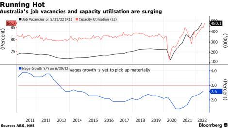 此前,澳大利亚私营企业调查显示,经济正接近满负荷运转。职位空缺数量徘徊在历史高位附近,澳大利亚联储预计失业率将进一步下降。