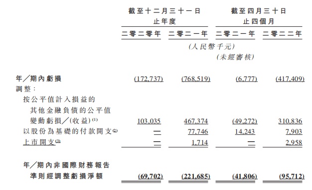 财务盈亏方面,截至2020年及2021年12月31日止年度以及截至2022年4月30日止4个月,公司实际亏损分别约为人民币6970.2万元、人民币2.22亿元及人民币9571.2万元,主要原因来自公司快速、多管线的研发进度,在业绩期间进一步加强临床前的研发工作及增加相关所需的行政支出: