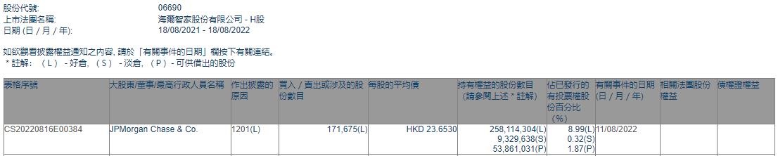 智通财经APP获悉,香港联交所最新资料显示,8月11日,小摩减持海尔智家(06690)17.1675万股,每股作价23.653港元,总金额约为406.06万港元。减持后最新持股数目约为2.58亿股,最新持股比例为8.99%。