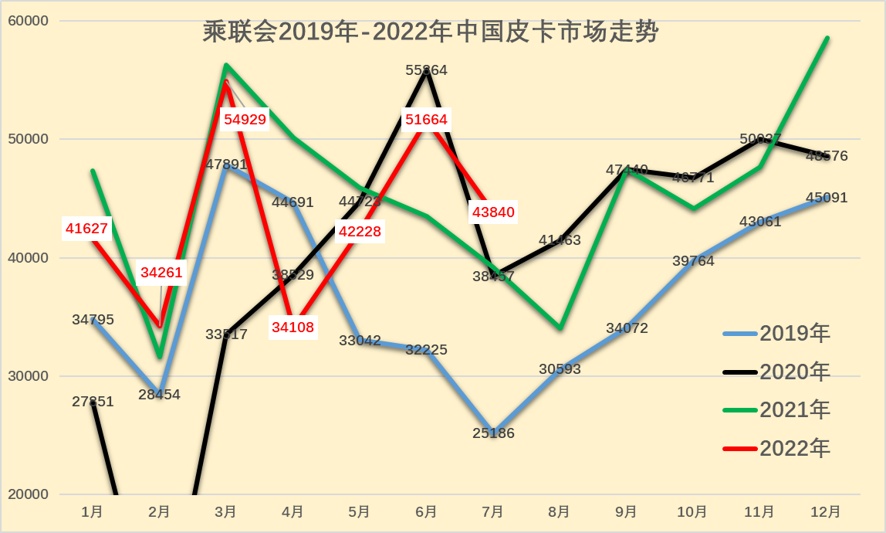 2022年7月份皮卡市场销售4.4万辆,同比2021年7月增长12%,环比今年6月下降15%。前期因疫情影响皮卡生产受阻的形势改善,促进2022年7月皮卡的产销表现回暖。这也是整体行业趋势共同改善的特征。