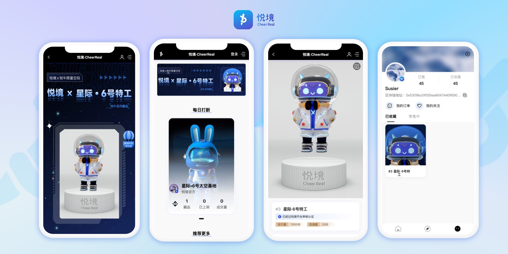 与此同时,悦境CheerReal数藏平台还特别开设了“悦境俱乐部”,为创作者和平台用户提供交流、交换、流转、拍卖的官方渠道,赋予数字资产更丰富的科技体验与价值成长空间。